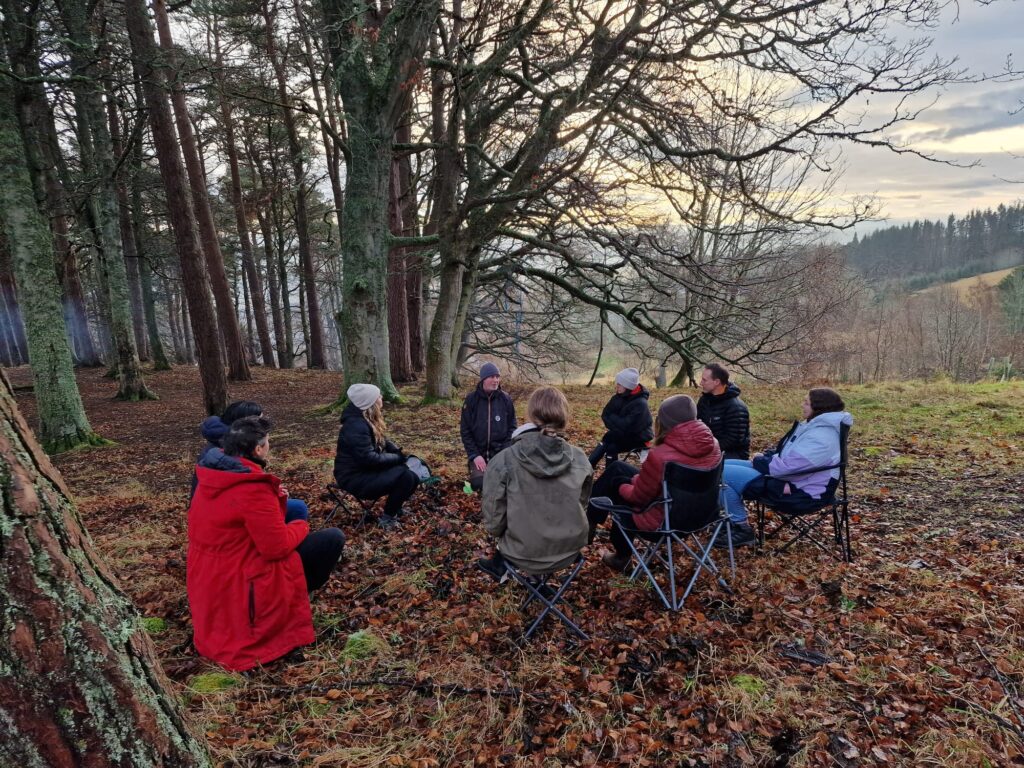 Stephen (Nature4Health) led a beautiful reflective session inspired by the winter solstice – a time traditionally associated with rest, release, and renewal. Everyone was invited to write down something they were ready to let go of as the year closed, placing these reflections into a handmade yule log that would later be burned, as well as something they hoped to carry into the light of the new year.